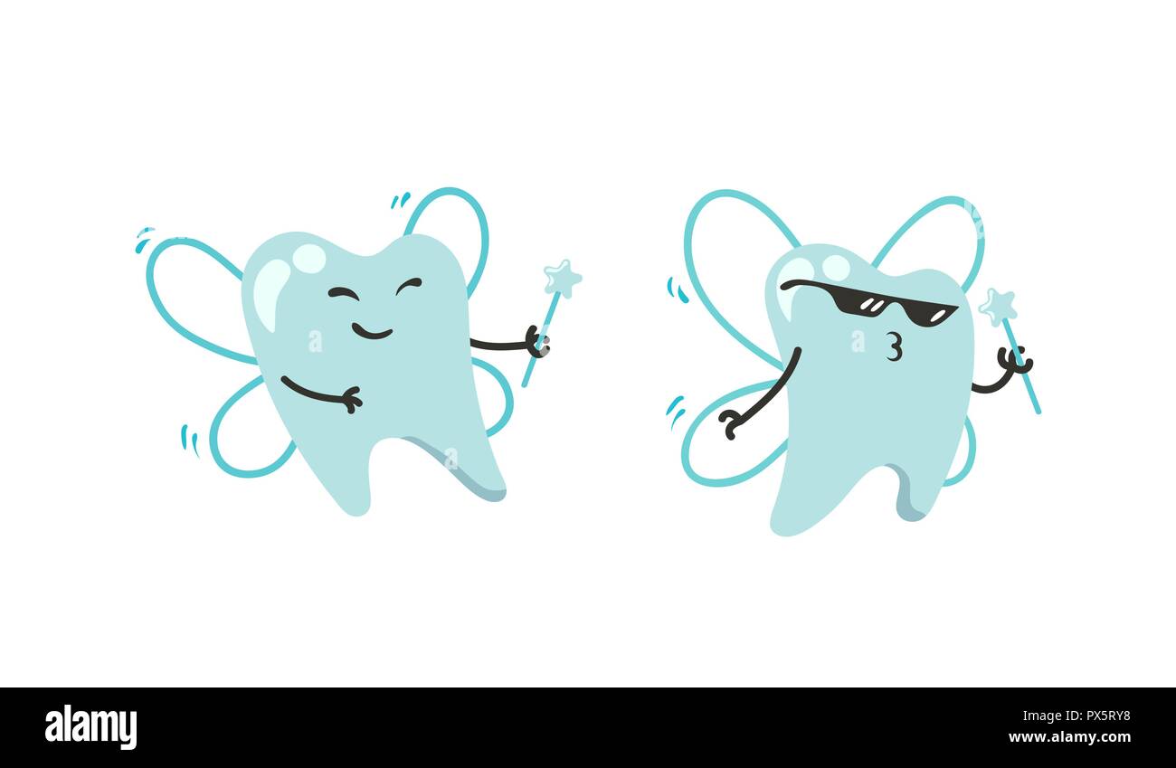 Fate Dente Impostano Il Carattere Vettore Collezione Igiene Orale Per Bambini Divertente Denti Con Ali E Bacchette Di Star Immagine E Vettoriale Alamy