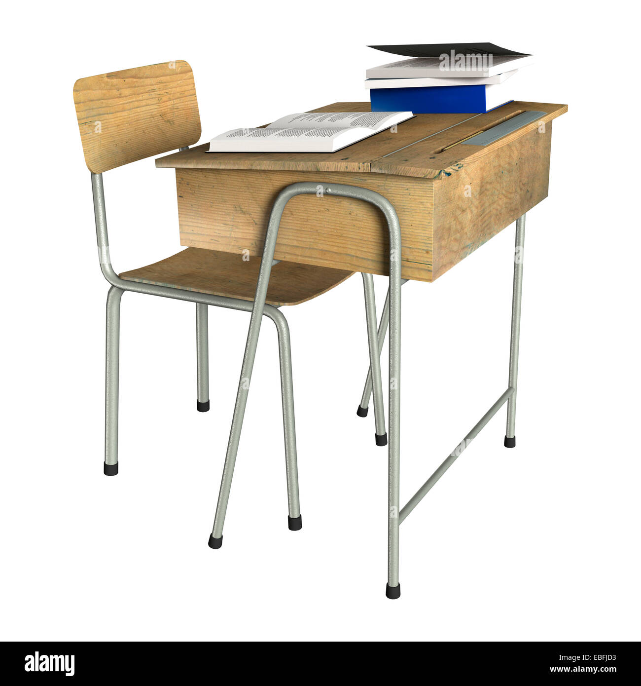 3d Digital Render Of A Wooden School Desk With Books On It Isolated Stock Photo Alamy