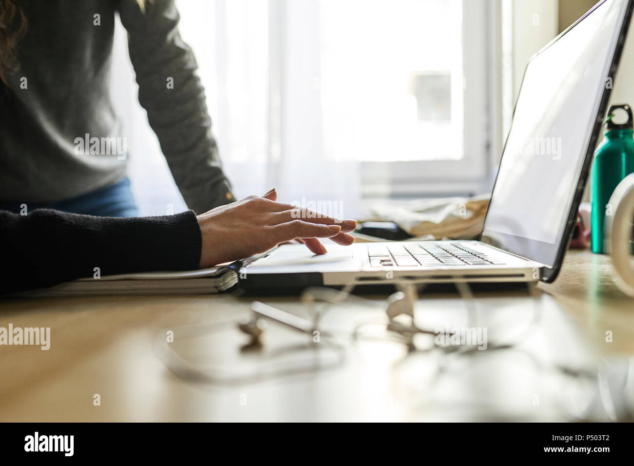 Lifestyle Office Setting With Laptop And Bookshelf Stock Photo
