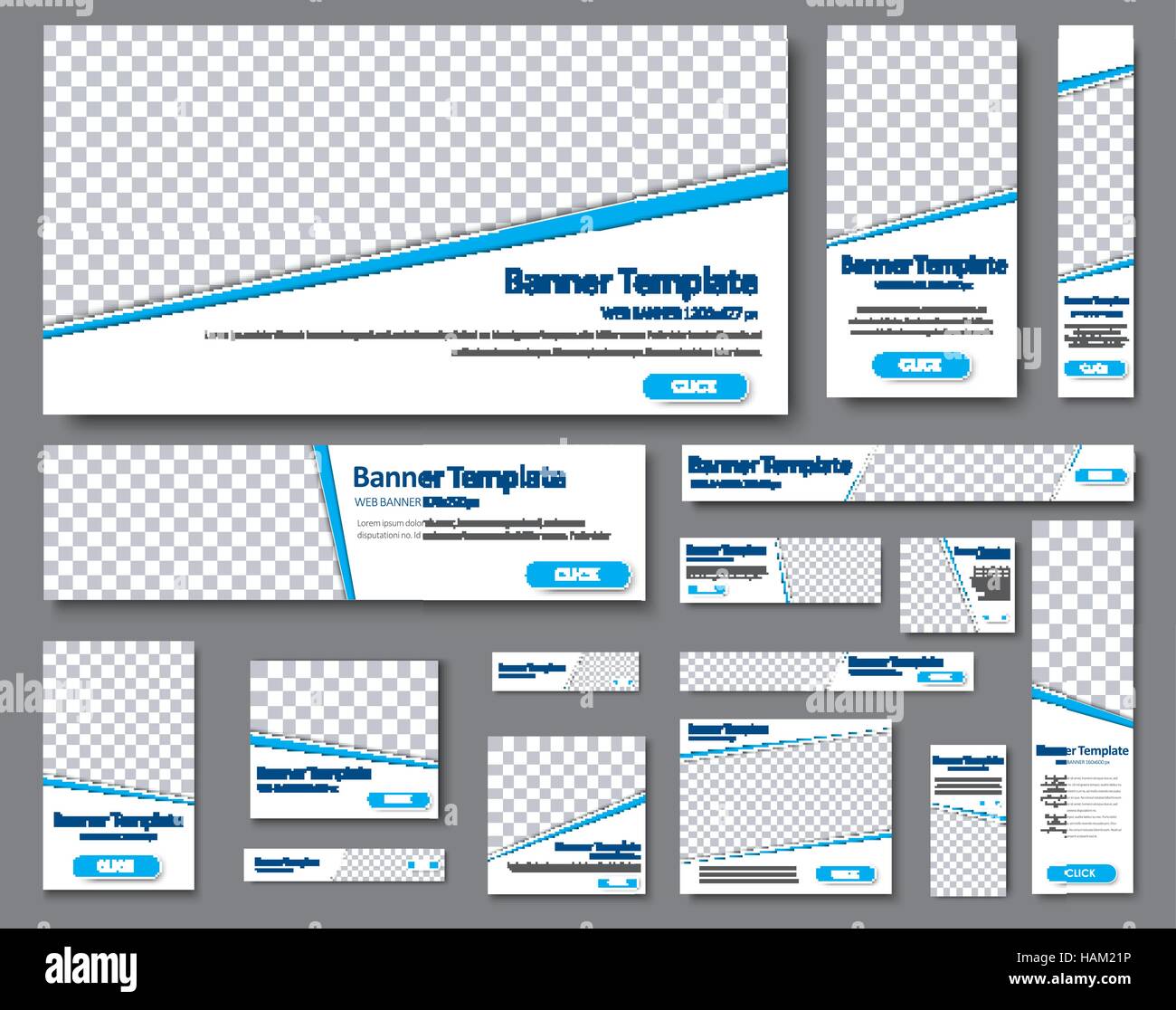 Set Di Banner Per Il Web Di Diverse Dimensioni Standard Modelli Con Una Striscia Di Colore Blu E Il Luogo Per Le Foto I Pulsanti Illustrazione Vettoriale Immagine E Vettoriale Alamy