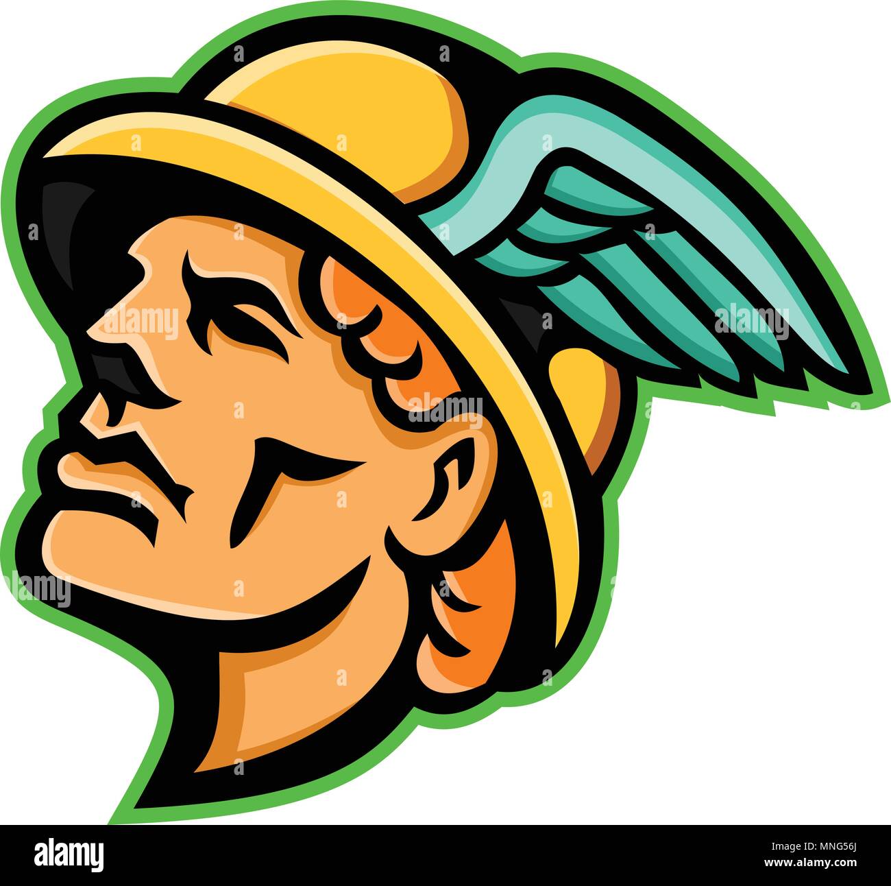 Icona Di Mascotte Illustrazione Della Testa Di Hermes Dio Greco Nella Religione E Mitologia Con Cappuccio Alato Cercando Visto Dal Lato Su Isolati In Background Immagine E Vettoriale Alamy