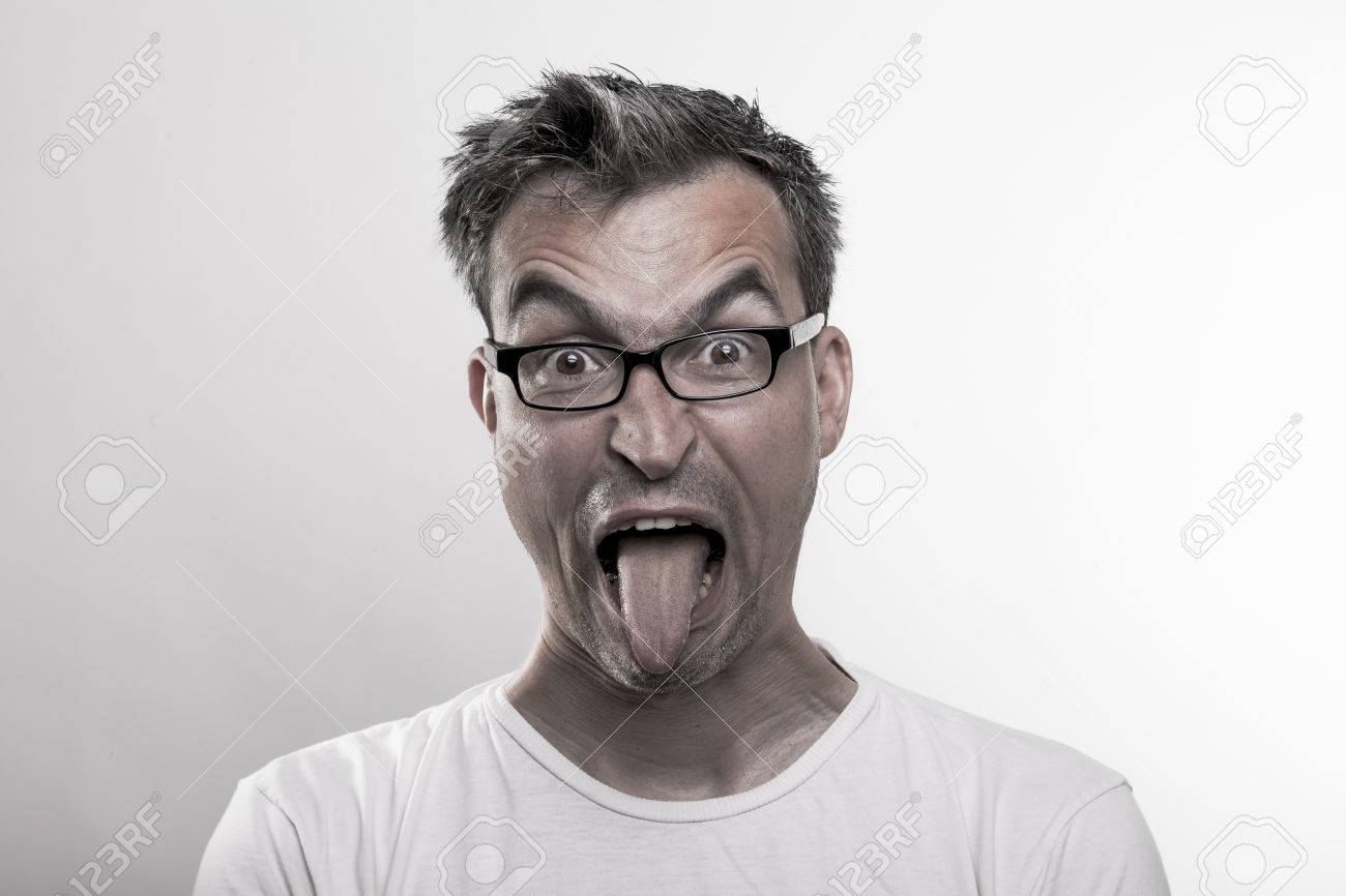 Immagini Stock Ritratto Di Un Uomo Caucasico Di Mezza Eta Con Disgusto Che Colpisce Fuori La Lingua Per Qualcuno Image 44593736