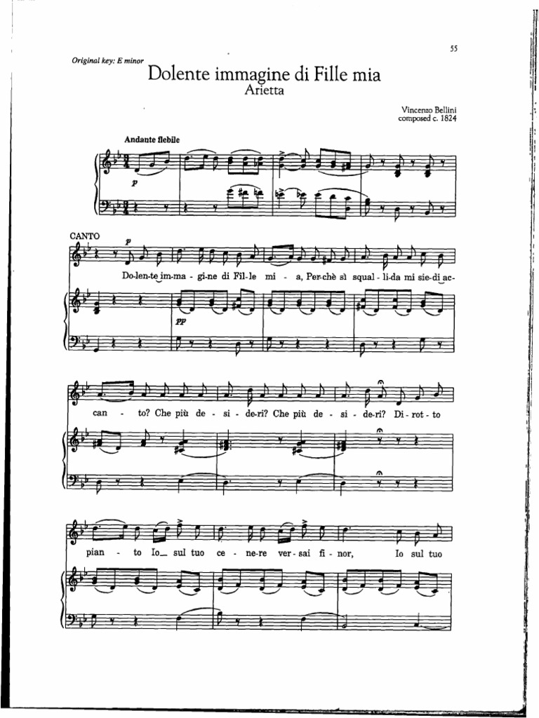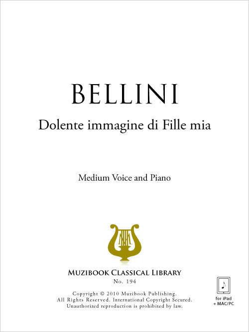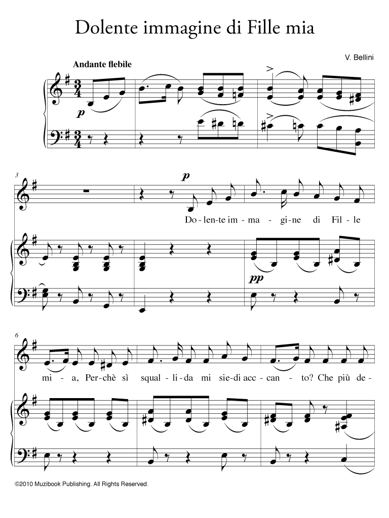 Bellini Dolente Immagine Di Fille Mia Voice Vincenzo Bellini Dolente Immagine Di Fille Mia For Voice And Piano Accompaniment Downloadable Pdf Sheet Music Transposed Any Key Any Clef Vmp527 5 49