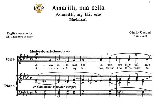 Amarilli Low Voice In F Minor G Caccini Ed Schirmer Classicalsingerdownloads Com