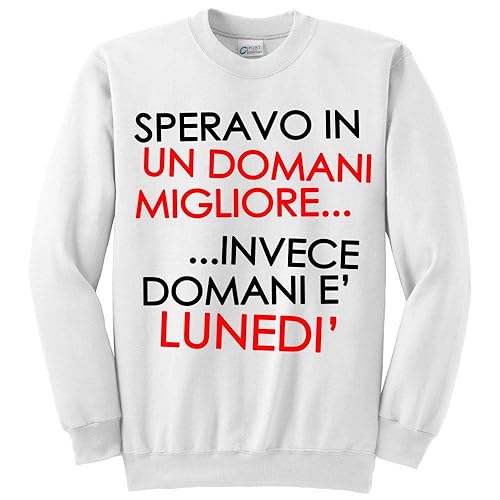 Felpa Unisex Uomo O Donna Speravo In Un Domani Migliore Invece Domani E Lunedi Divertente Amazon It Handmade
