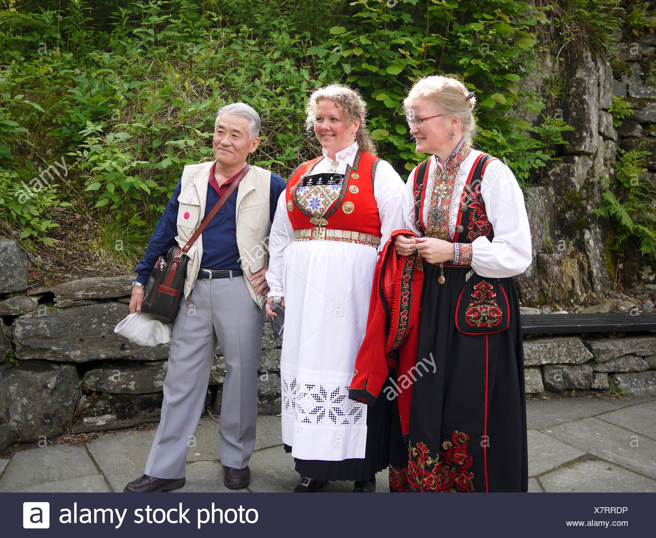 Bergen Norvegia Due Donne Norvegesi In Abito Tradizionale Foto Stock Alamy
