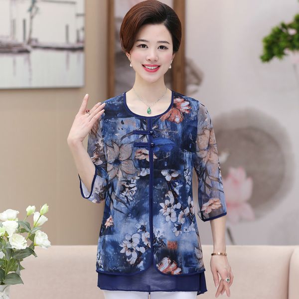 Acquista Waeolsa Stile Cinese Donna Etnico Chiffon Camicette Grigio Blu Rosso Verde Fiore Layered Tops Donne Orientali Botton Design Camicetta A 28 24 Dal Yujiu Dhgate Com