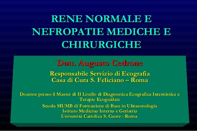 Rene Normale E Nefropatie Mediche E Chirurgiche