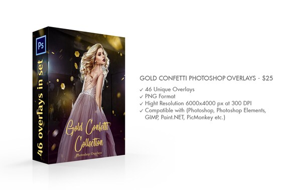 Gold Confetti Photoshop Overlay Photoshop Overlays Photo Etsy