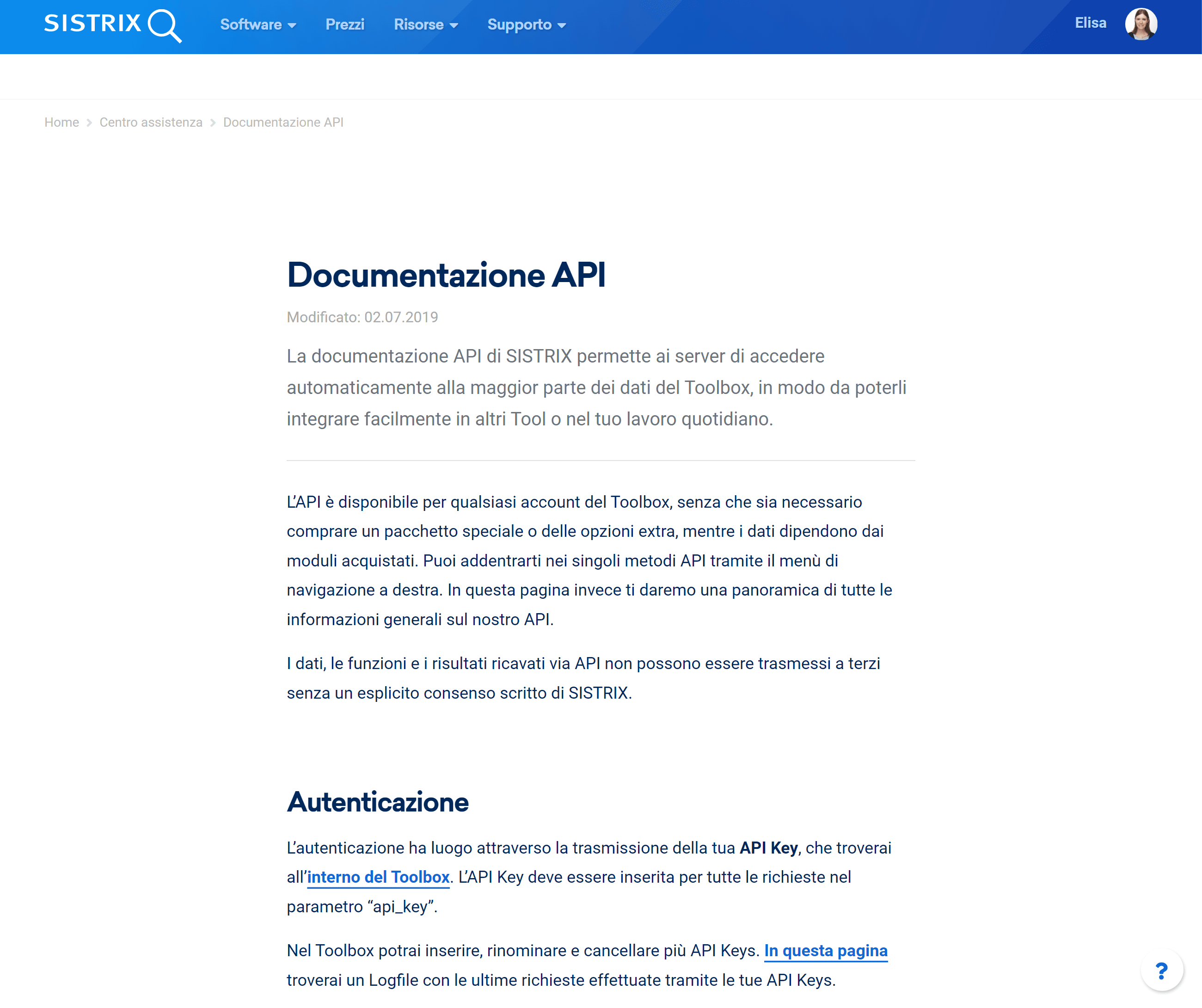 Interfaccia Api Sistrix