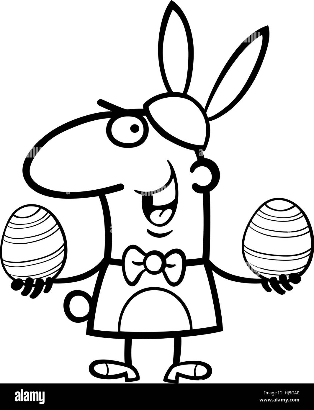 Bianco E Nero Cartoon Illustrazione Di Funny Man In Easter Bunny Costume Con Uovo Di Pasqua Nelle Sue Mani Per Libro Da Colorare Foto Stock Alamy