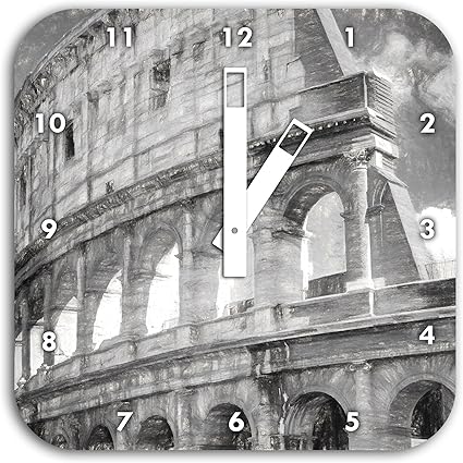 Colosseo A Roma Effetto Disegno A Carboncino Orologio Da Parete Quadrato Del Diametro 28 Centimetri Con