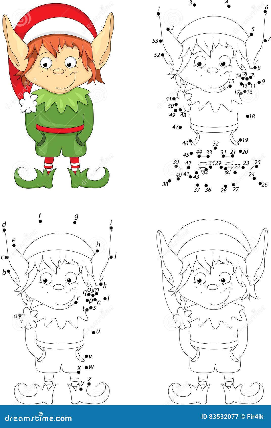 Christmas Elf Coloring Book And Dot To Dot Game For Kids Stock Vector Illustration Of Outlined Isolated 83532077