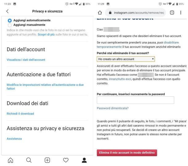 Come Eliminare Account Instagram Da Smartphone O Pc