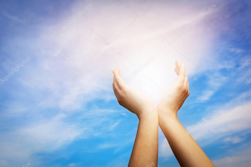 Immagini Stock Le Mani Alzate Cattura Sole Sul Cielo Al Tramonto Concetto Di Spiritualita Benessere Energia Positiva Etc Image 61712972