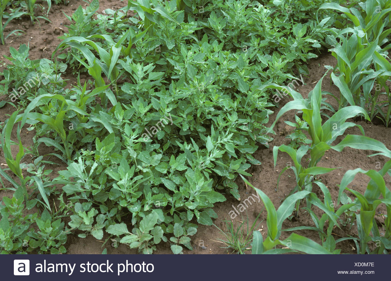 Gallina Di Grasso E Altri Ampi Lasciarono Le Erbe Infestanti Nei Giovani Di Mais Francia Foto Stock Alamy