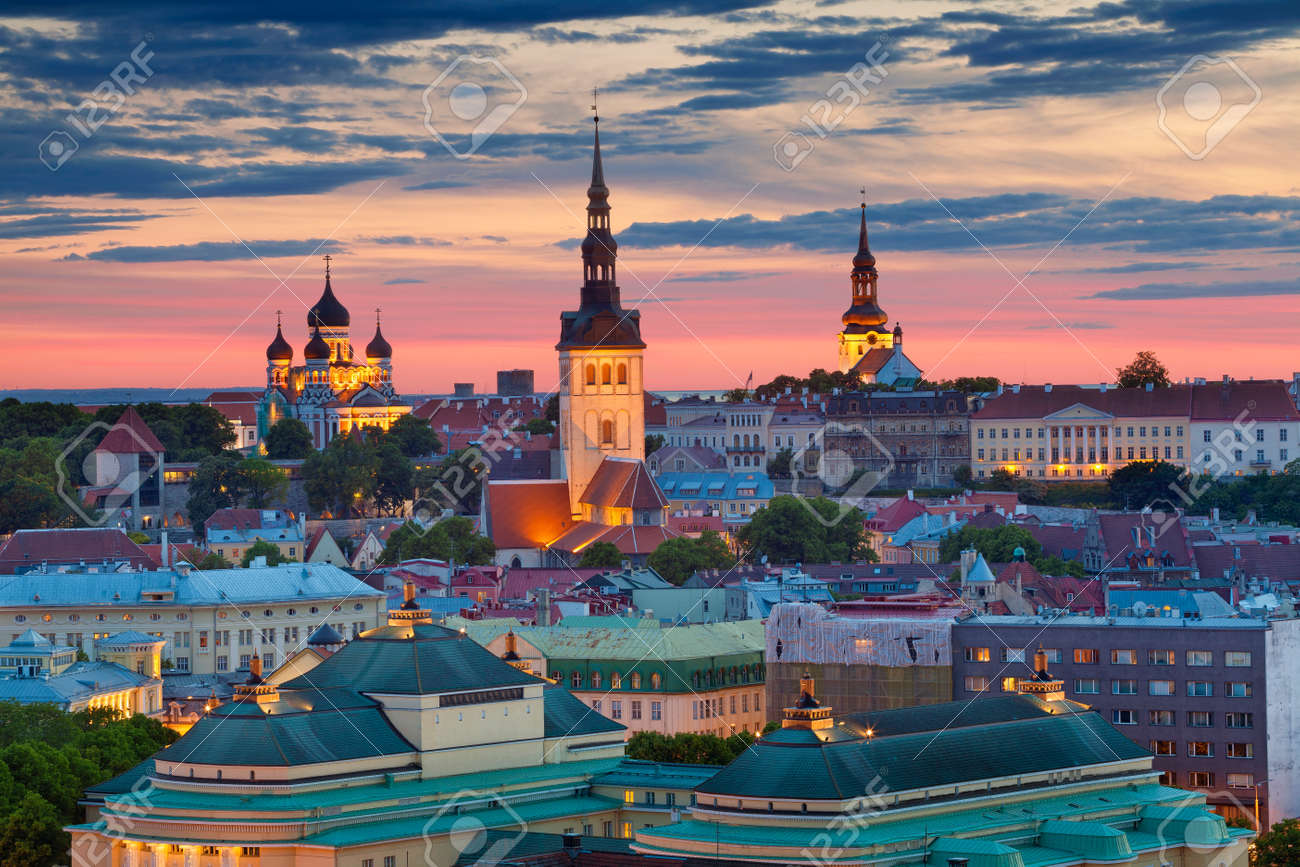 Immagini Stock Tallinn Immagine Della Citta Vecchia Di Tallinn In Estonia Durante Il Tramonto Image 59913071