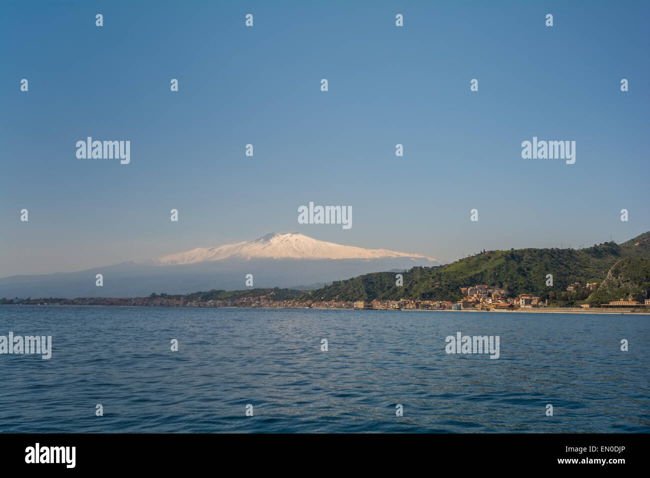 City Of Taormina In Sicily With Vulcano Etna In Background Stock Photo Alamy