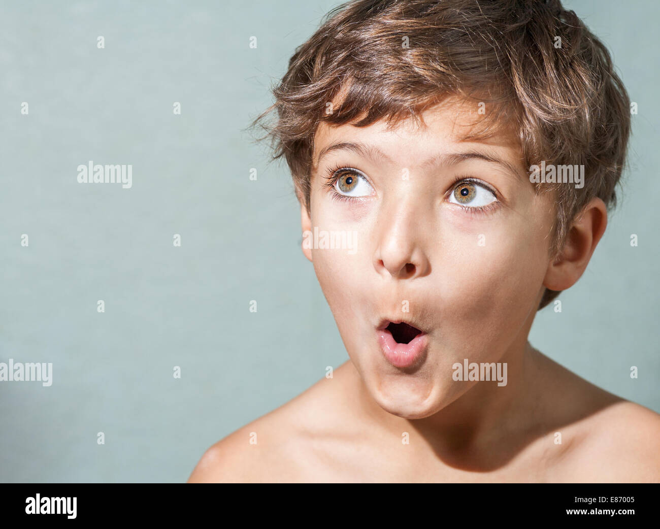 Stupiti 7 Anni Vecchio Ragazzo Fare Facce Buffe Foto Stock Alamy