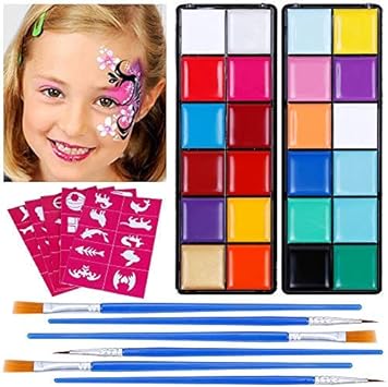 Lictin Truccabimbi Kit Face Paint Kit Per La Pittura Del Viso Per Bambini 24 Colori 50 Stencil 6 Pennelli Professionali Amazon It Bellezza