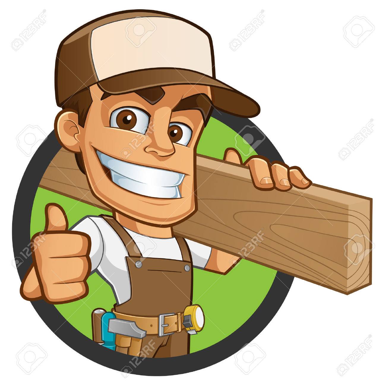 Vettoriale Amichevole Falegname E Vestito In Abiti Da Lavoro E Portando Un Legno Image 45651006