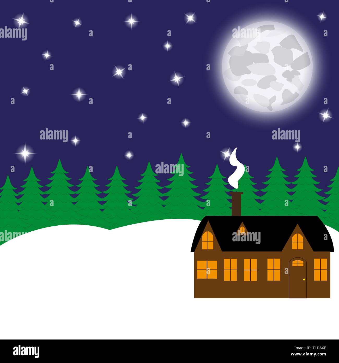 Cottage In Una Fantastica Notte Di Foresta Illustrazione Vettoriale Immagine E Vettoriale Alamy