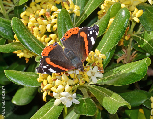 Farfalla Vanessa Atalanta Su Fiori Di Pittosporo Buy This Stock Photo And Explore Similar Images At Adobe Stock Adobe Stock