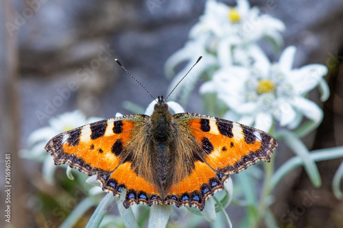 Farfalla Vanessa Cardui Su Fiore Di Stelle Alpine Con Sfondo Sfuocato Di Stelle Alpine Tipico Della Montagna Buy This Stock Photo And Explore Similar Images At Adobe Stock Adobe Stock
