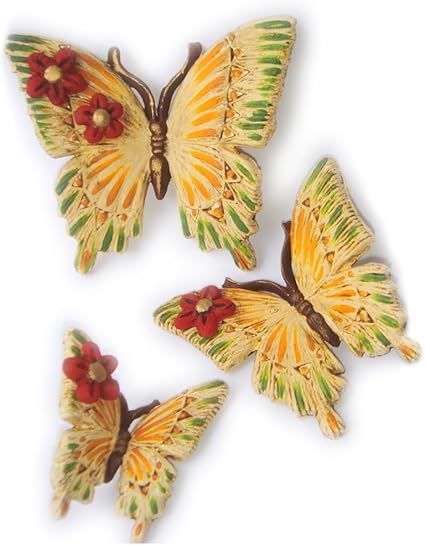 Le Ceramiche Del Re Farfalle In Ceramica Decorativa Da Appendere 3 Farfalle Da Parete Effetto 3d Con Fiori Da Collezione Amazon It Casa E Cucina