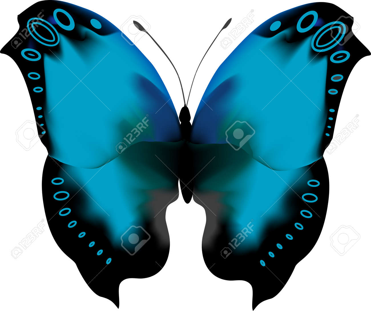 Vettoriale Di Farfalle Tropicali Iridescente Blu Con Le Ali Aperte C E Un Confine Di Ocello Concentrici Sulle Ali Image 4311208