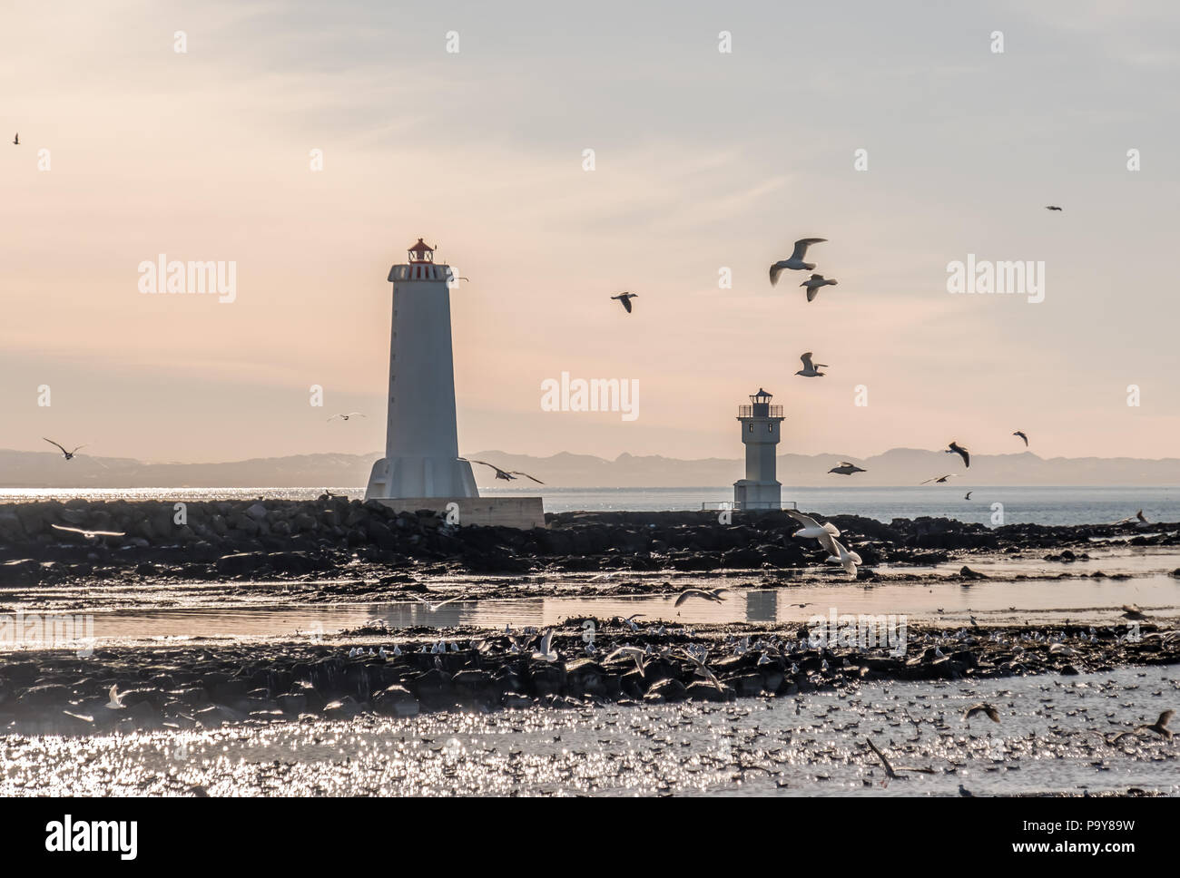 Fari Con Uccelli Marini Akranes Islanda Foto Stock Alamy