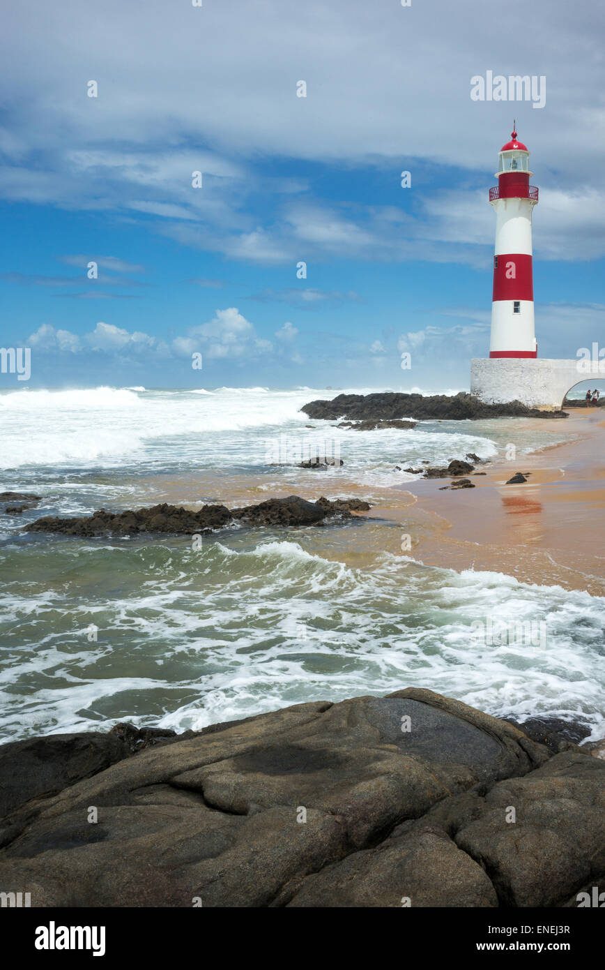 Il Brasile Salvador Il Farol De Itapua Faro Sul Mare Mosso Foto Stock Alamy