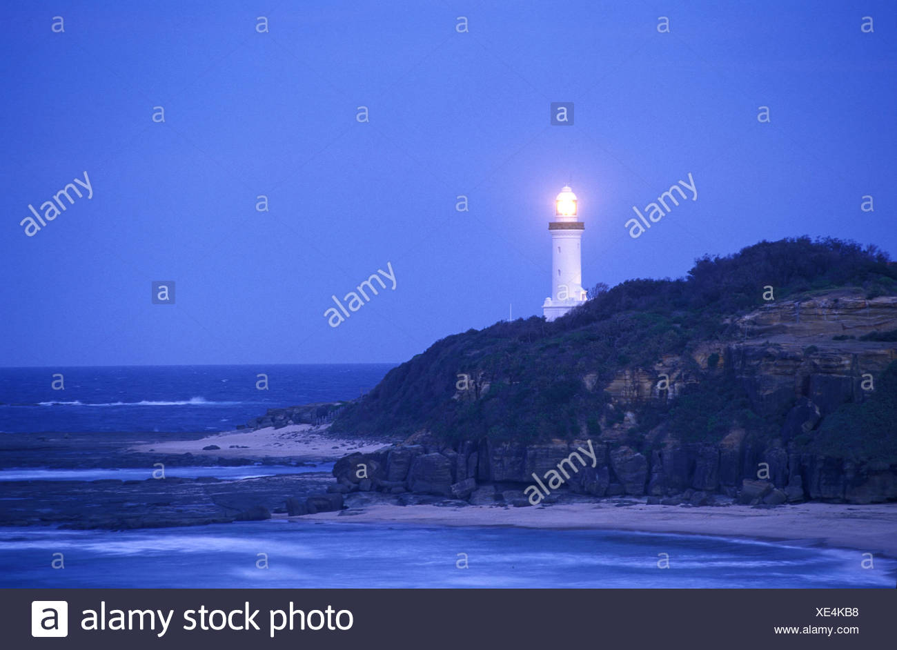 Australia Faro New South Wales Norah Capo Spedizione Costa Roccia Faro Sul Mare Di Notte Foto Stock Alamy