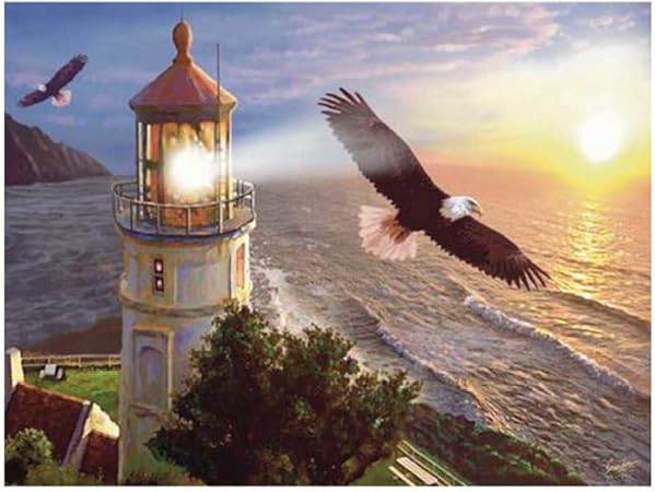 Jwqing Hd Moderna Stampa Su Tela Pittura Faro Sul Mare Tramonto E Aquila Foto Poster Opere D Arte Poster Per Soggiorno Decorazioni Per La Casa 70x100 Cm Senza Cornice Amazon It Casa E Cucina