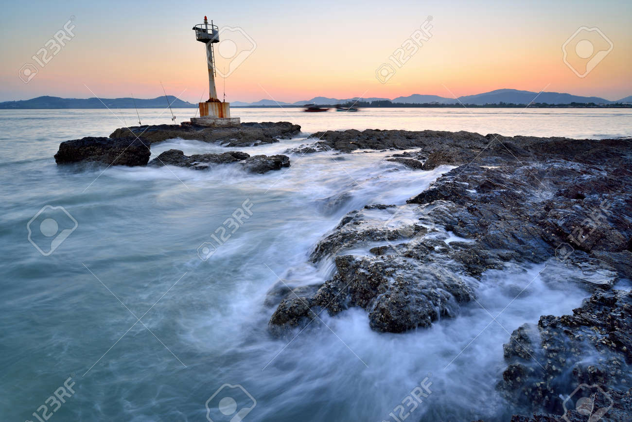 Immagini Stock Faro Sul Mare Nella Penombra Image 27361052