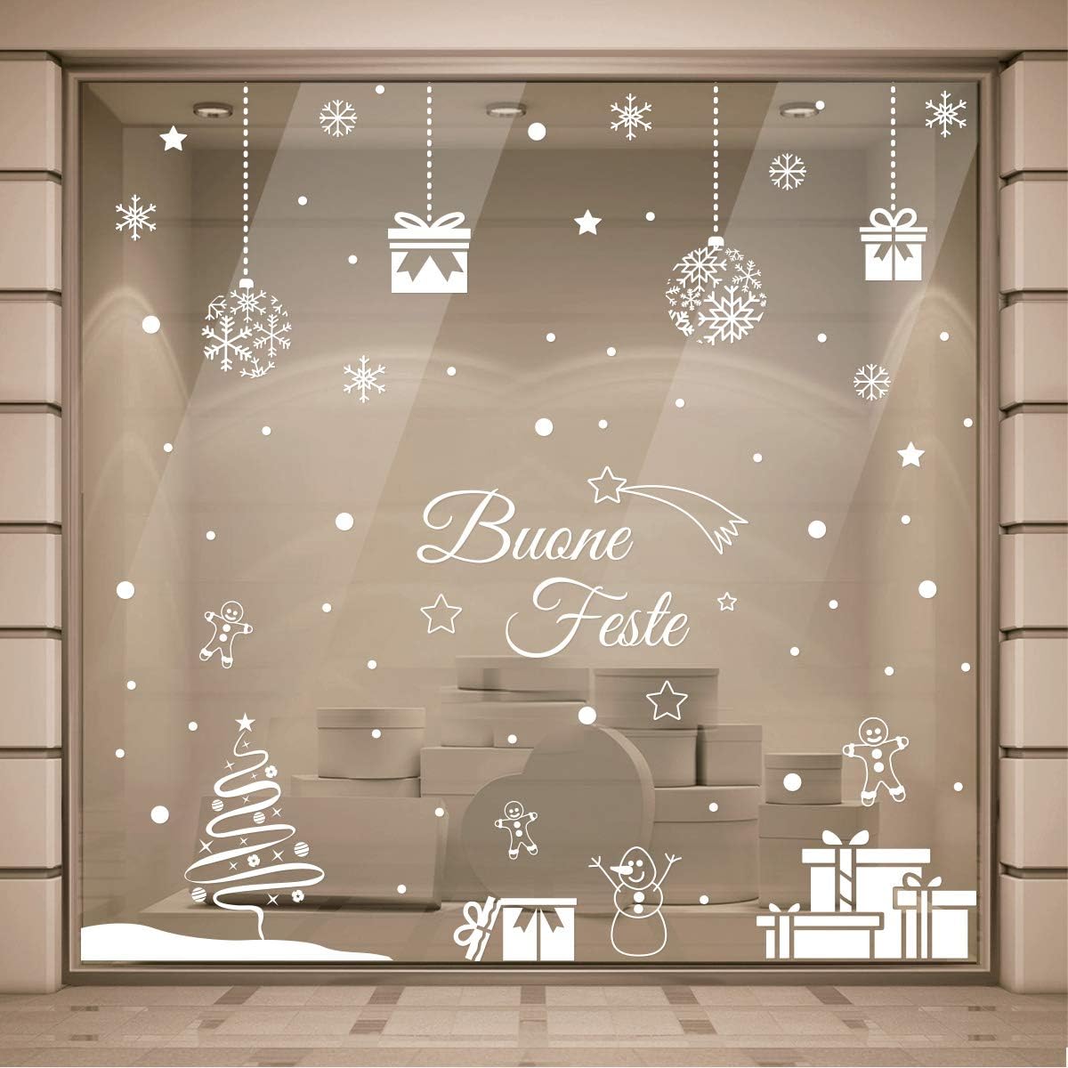 Vetrofanie Natale 2x2 Metri Adesivi Natale Vetrine Rimovibili Riposizionabili Decorazioni Natalizie Negozi Scritte Buone Feste Albero Di Natale Stickers Natalizi Finestre Decal Pacchi Regalo Amazon It Casa E Cucina