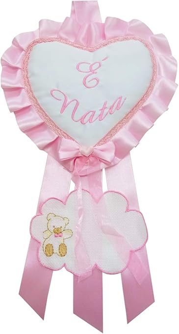 Fiocco Nascita Rosa Coccarda Cuore Da Ricamo Amazon It Prima Infanzia