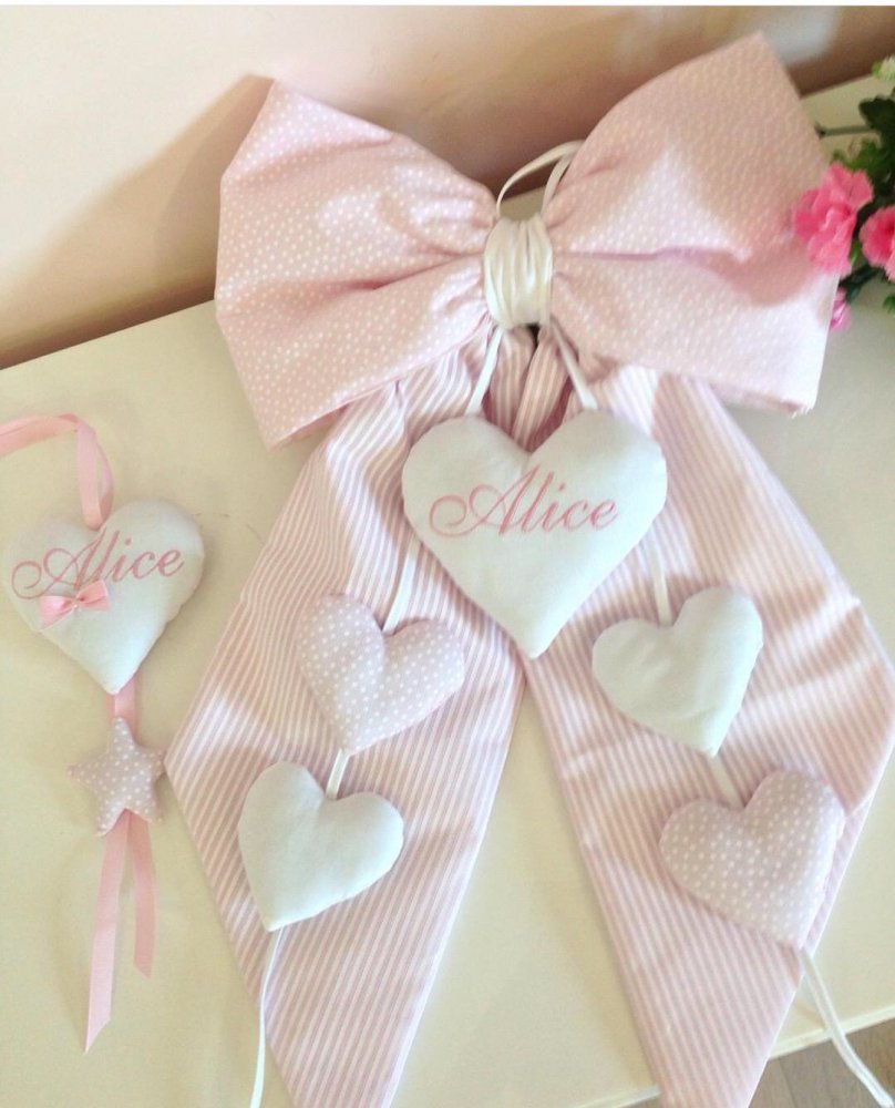 Fiocco Nascita Rosa Cuore Fiocco Con Ricamo Amazon It Prima Infanzia