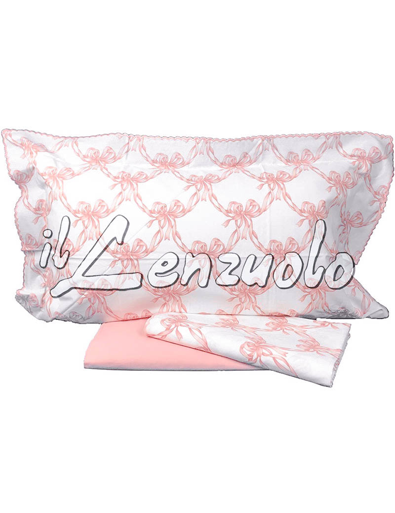 Little Bear Set Lenzuola Bianche Per Neonata Con Fiocchi Rosa Coccolebimbi
