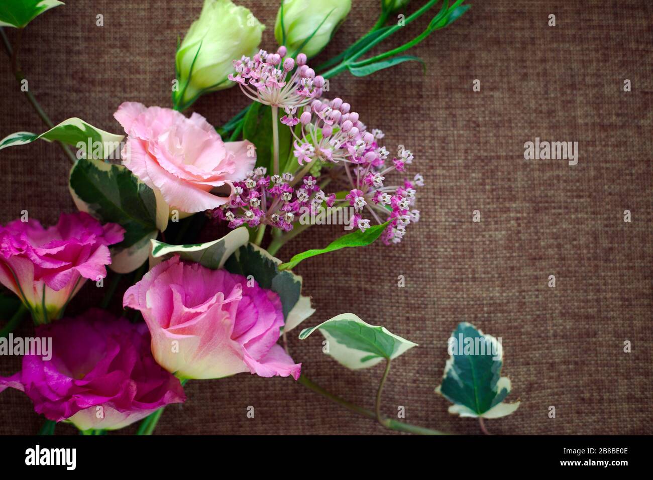 Mazzolino Bello Eustoma Fiore Lisianthus Tulipano Genziana Eustomas Su Sacking Tela Struttura Fondo Archivio Immagini K54061381 Fotosearch