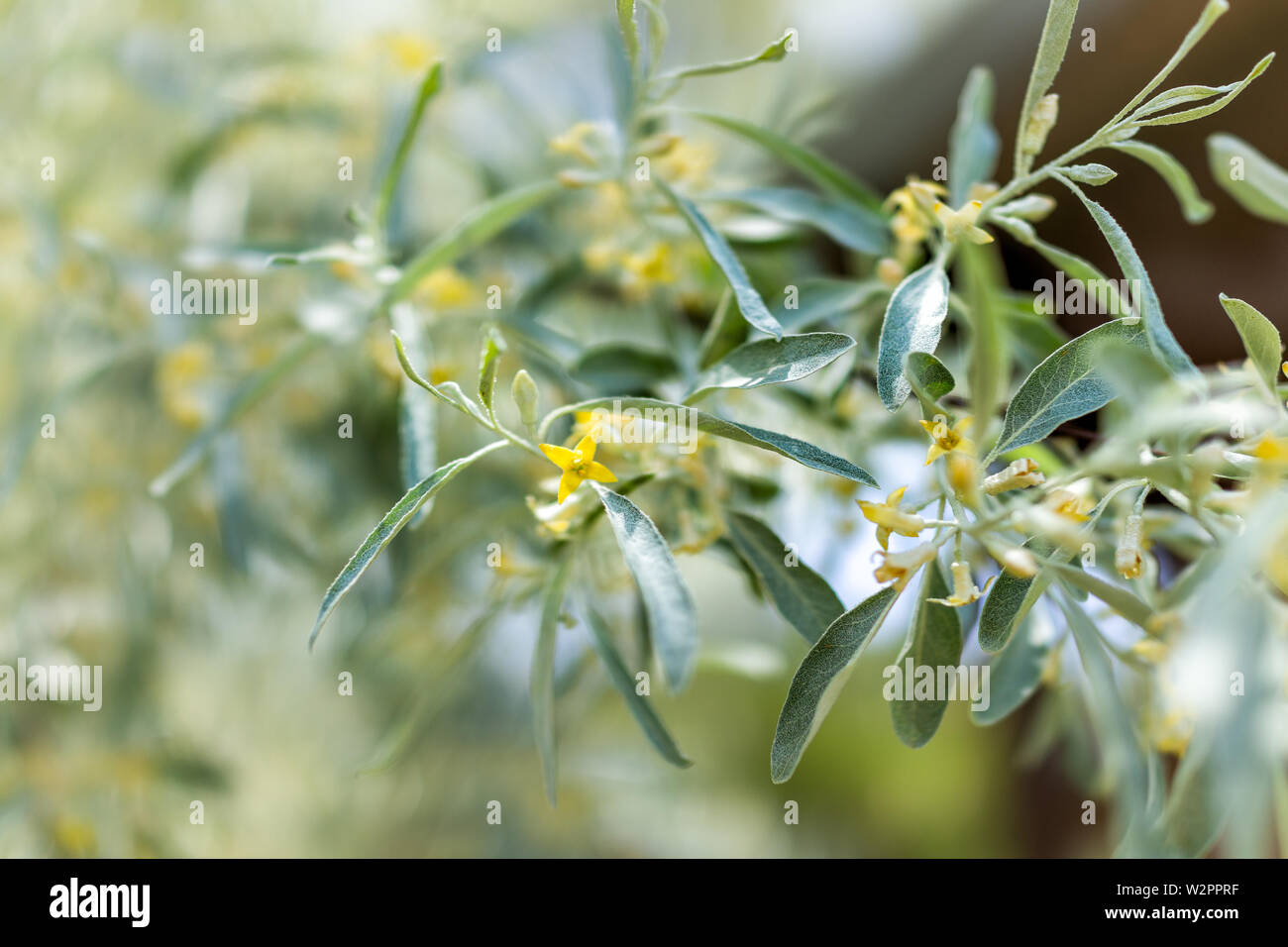 Macro Closeup Russo Di Ulivo Ramo Fiori Gialli E Sfocato Sfondo Bokeh Di Fondo Nel Giardino Verde Foto Stock Alamy