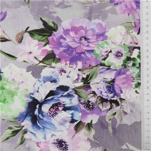 Tessuto In Viscosa Fiori Dipinti Lilla Bluastro Tessuti In Viscosa Tessuti Com