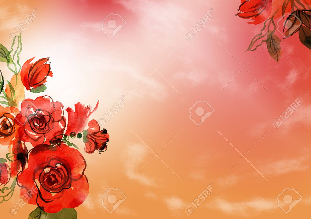 Immagini Stock Priorita Bassa Floreale Con I Fiori Dipinti A Mano Dell Acquerello Rose Invito Scheda Matrimonio Biglietto D Auguri Image 72892553