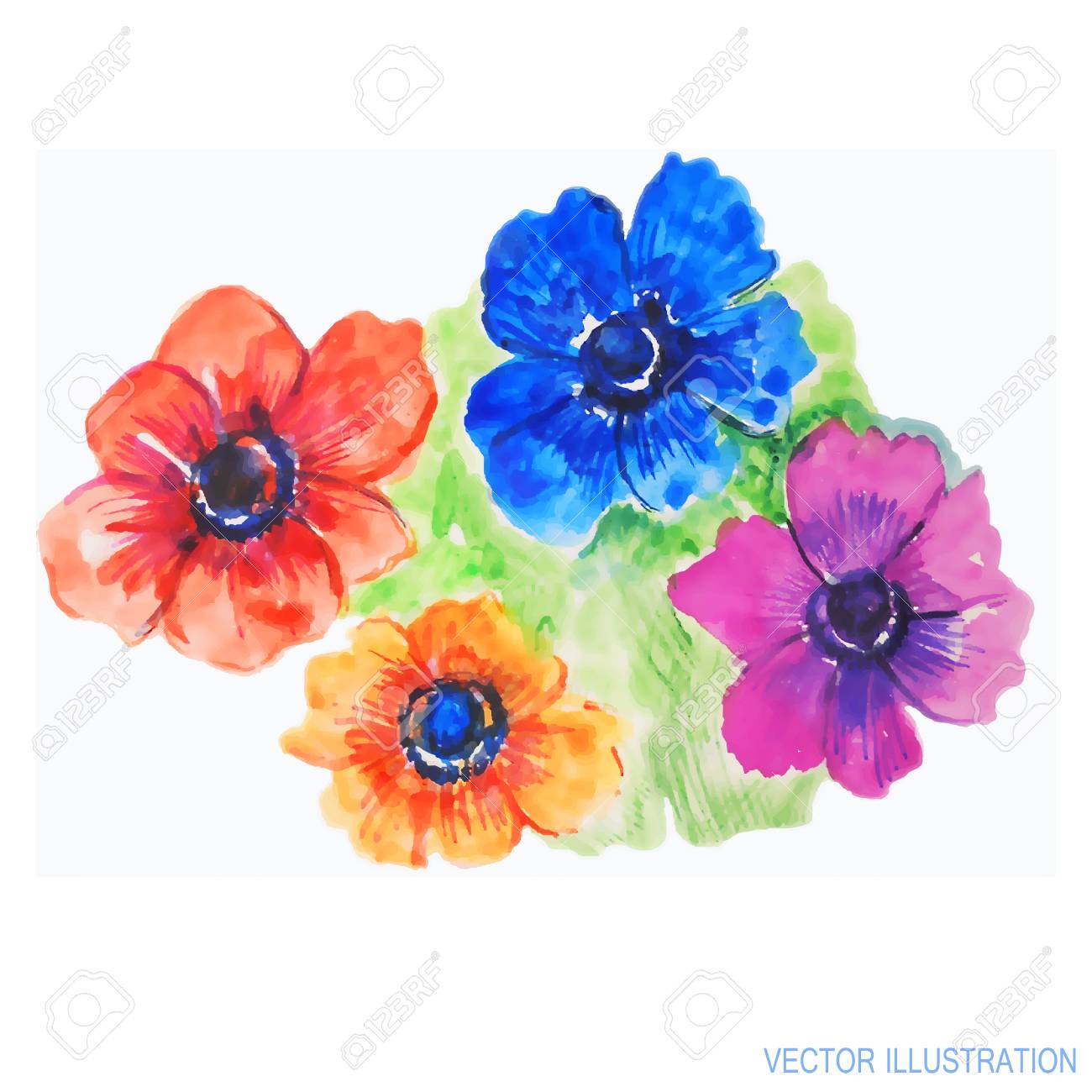 I Fiori Dipinti A Mano Dell Anemone Dell Acquerello Hanno Messo Nello Stile D Annata Illustrazione Di Stock Illustrazione Di Botanica Colorful 100309832