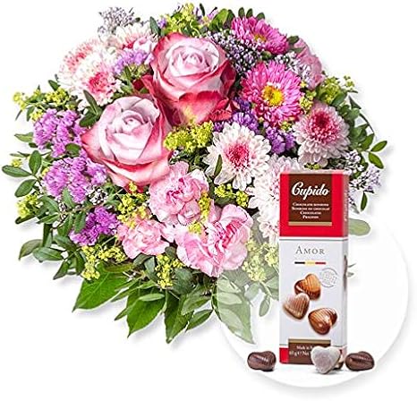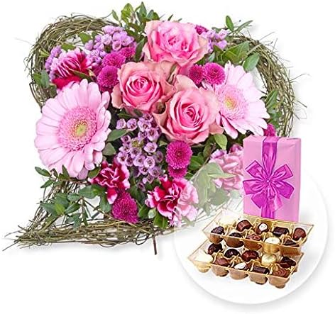 Bouquet Di Fiori Bella E Cioccolatini A Forma Di Cuore Amazon It Giardino E Giardinaggio