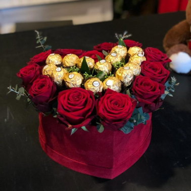 Flower Box Cuore Con Rose Rosse E Cioccolatini Lule Ne Tirane