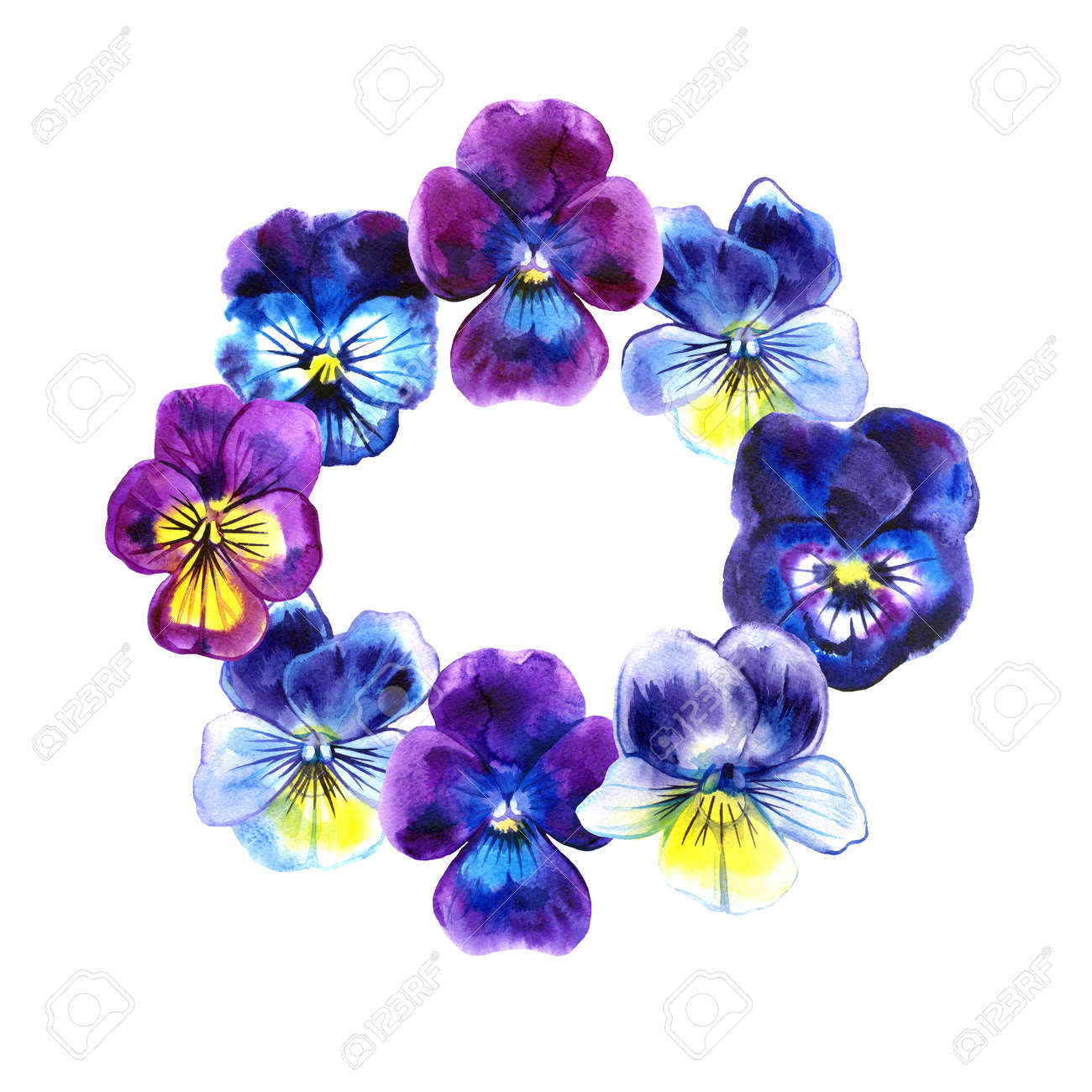 Immagini Stock Boarder Con Fiori Di Panse Disegnati A Mano Viola Viola Giallo Con Foglie Verdi Sfondo Retro Con Fiori Romantici Cornice Perfetta Per Biglietti Di Auguri E Compleanni Inviti Image 99018582