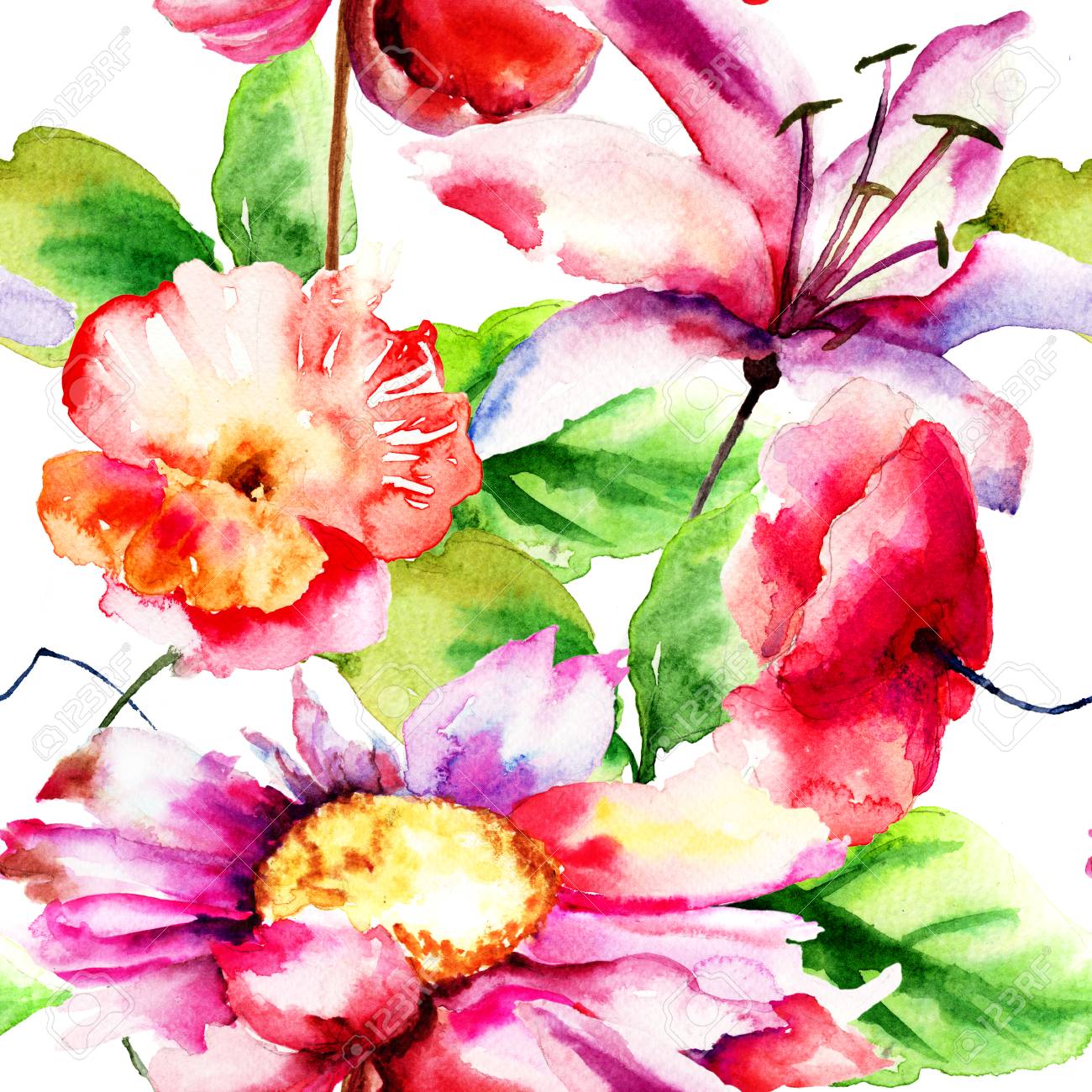 Immagini Stock Sfondi Senza Soluzione Di Continuita Con Fiori Romantici Illustrazione Ad Acquerello Image 67766241