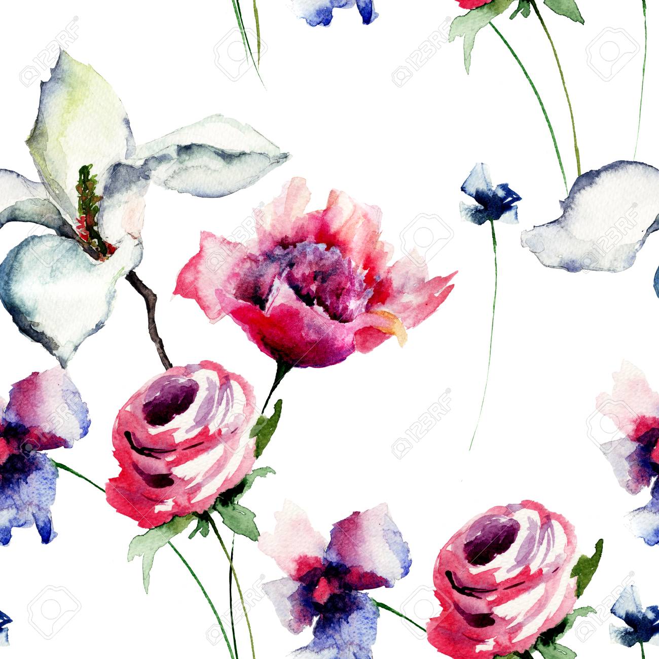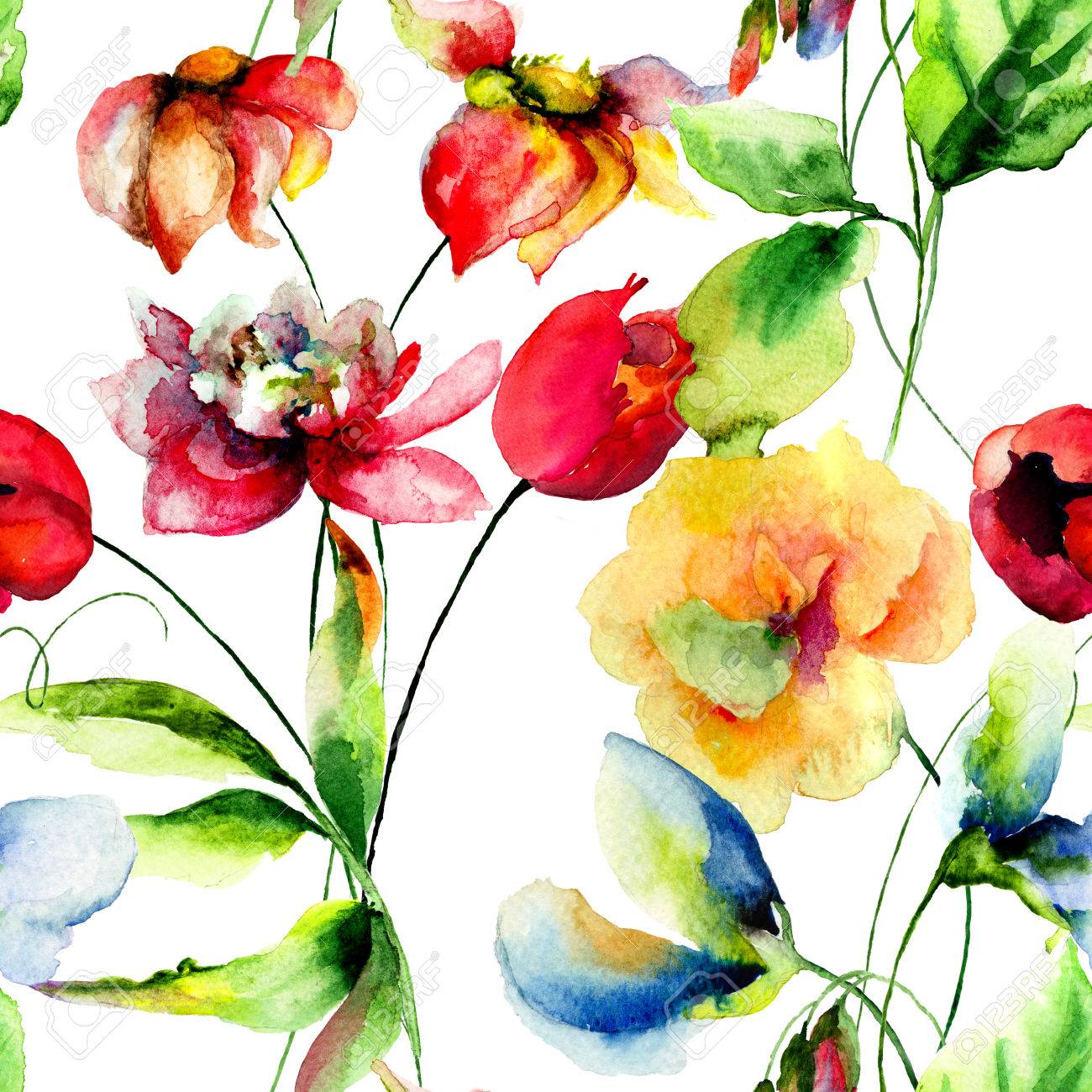 Immagini Stock Sfondi Senza Soluzione Di Continuita Con I Fiori Romantici Illustrazione Acquerello Image 38251459