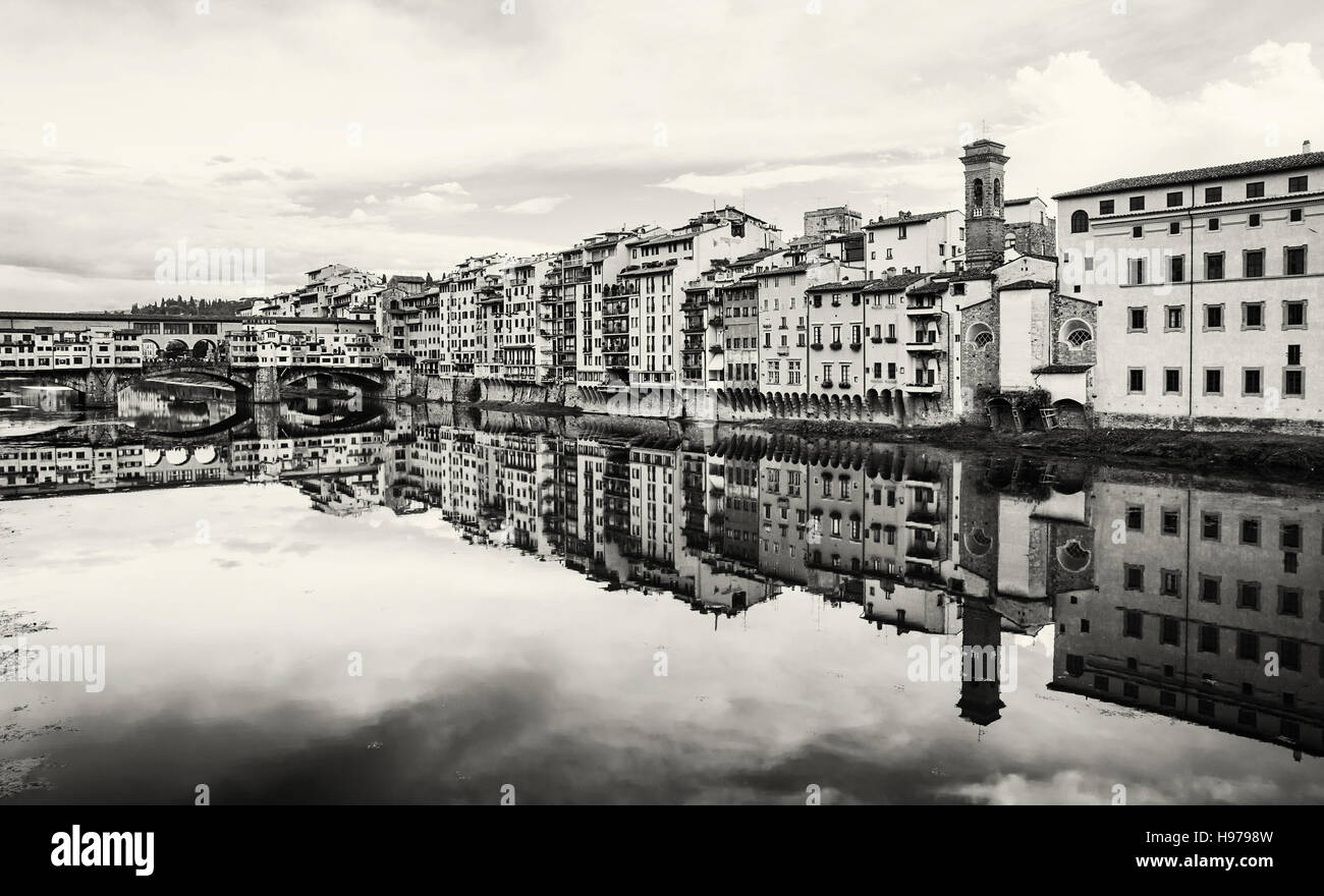 Ponte Vecchio E Gli Edifici Storici Sono In Mirroring Del Fiume Arno Firenze Toscana Italia Foto In Bianco E Nero Tema Architettonico Foto Stock Alamy